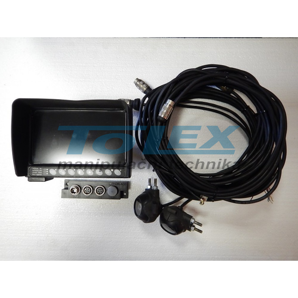 použitý plně funkční univerzální barevný kamerový systém pro VZV a jiné pracovní stroje. Napětí 12V, 1x monitor, 2x kamera, stavitelné držáky pro monitor i kamery, kompletní elektrosvazky pro propojení zařízení. Původní cena nového zařízení 24 700,- Kč + DPH.