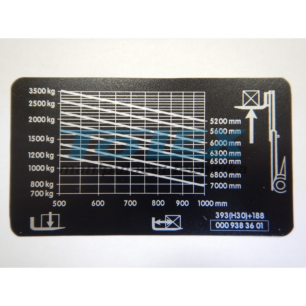 samolepící zátěžový diagram pro vozík s nosností 3500kg, rozměry: 115 x 65mm