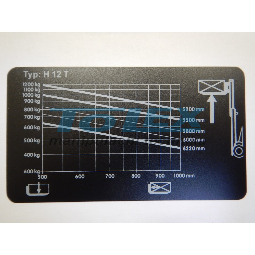 samolepící zátěžový diagram pro vozík s nosností 1200kg, rozměry: 155 x 85mm