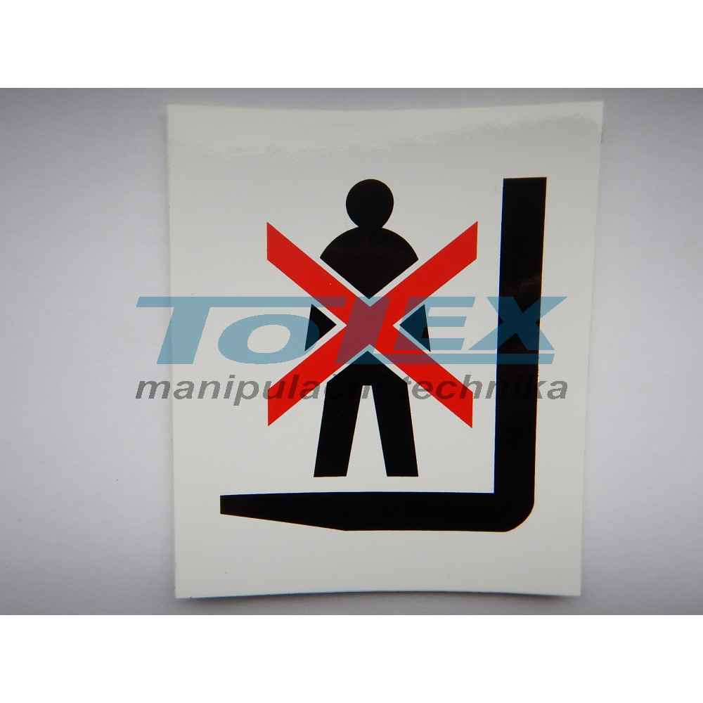samolepící symbol "nestůj na vidlicích", rozměry: 105 x 90mm, materiál: bílá lesklá samolepící folie s tříbarevným lesklým potiskem