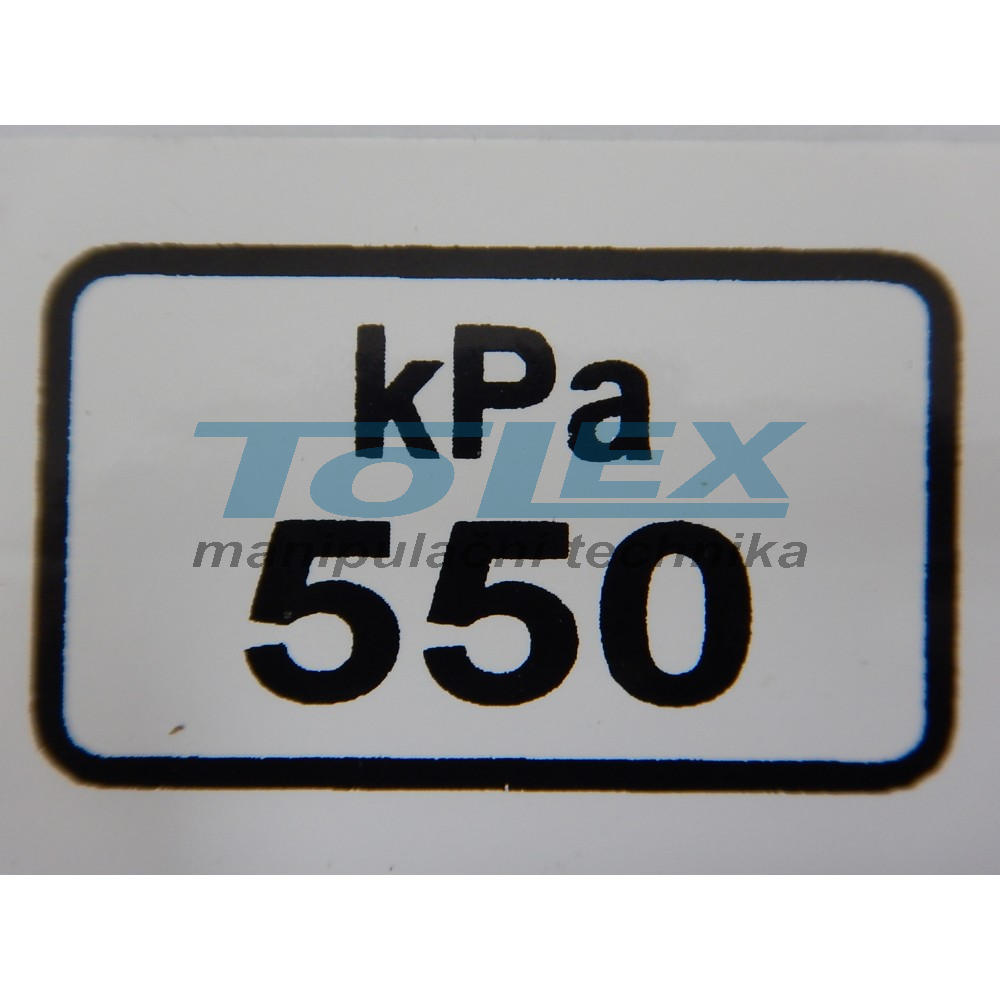 samolepící symbol "tlak 550 kPa", rozměry: 35x 21mm, materiál bílá lesklá samolepící folie s černým lesklým potiskem