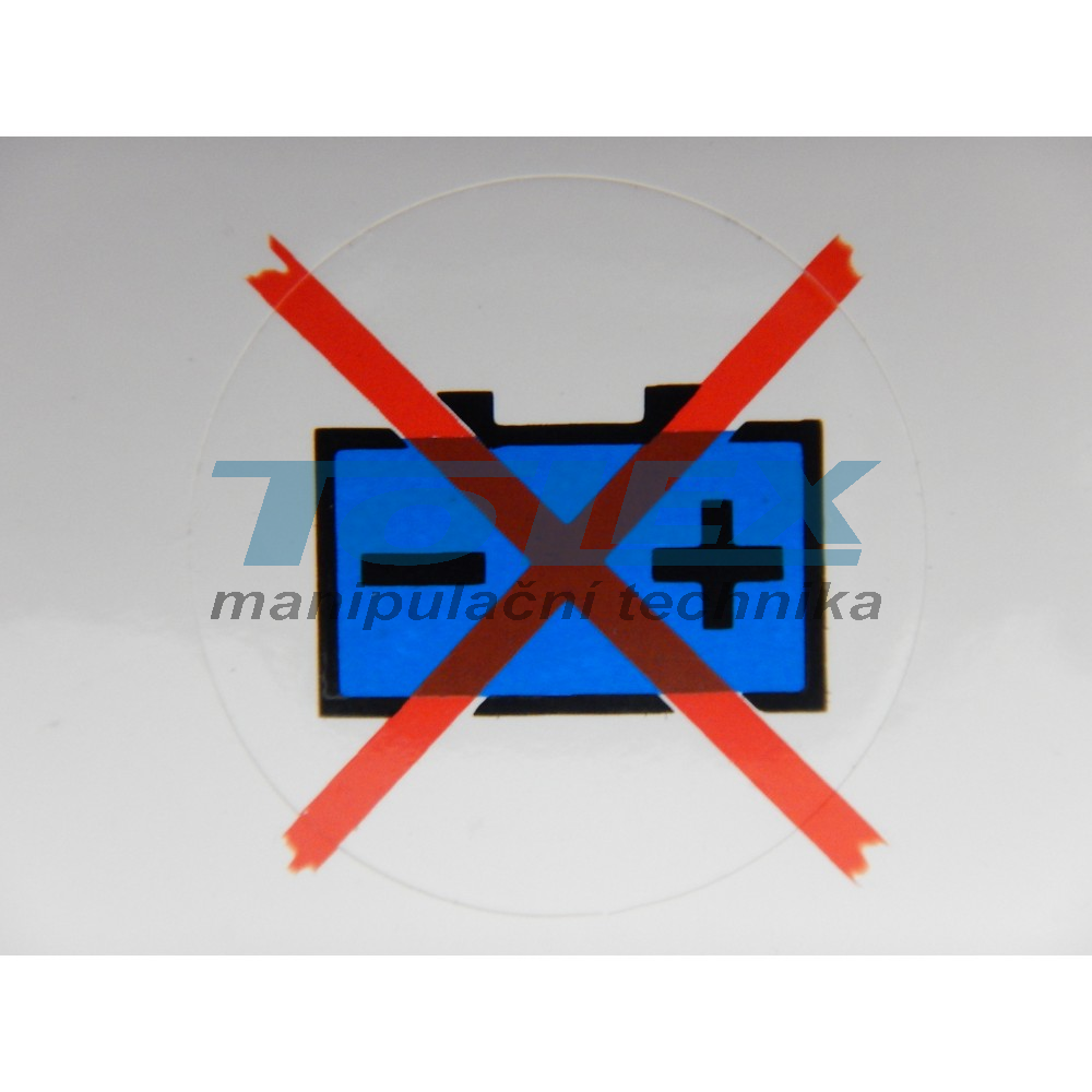 samolepící symbol "odpojení baterie", průměr kruhu symbolu 20mm, materiál: bílá lesklá samolepící folie s tříbarevným lesklým potiskem