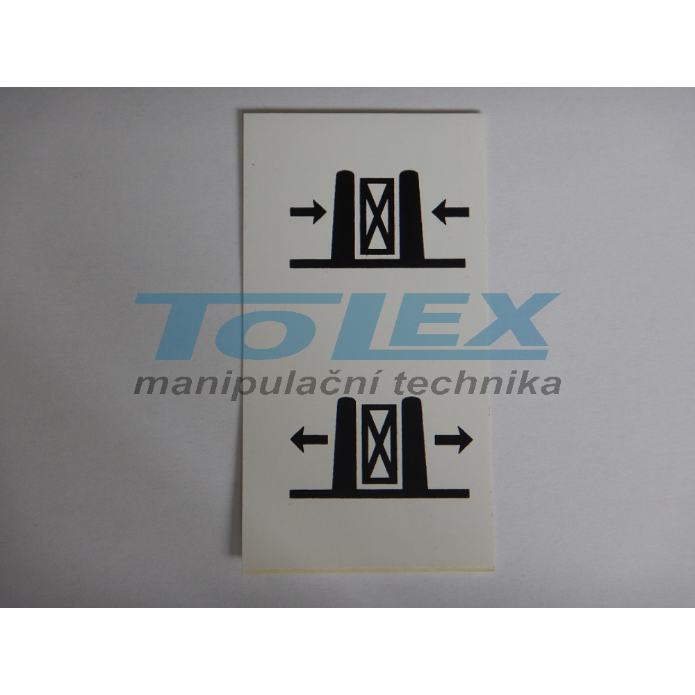 samolepící symbol "svěrné čelisti", rozměry: 90 x 45mm, materiál bílá lesklá samolepící folie s černým lesklým potiskem