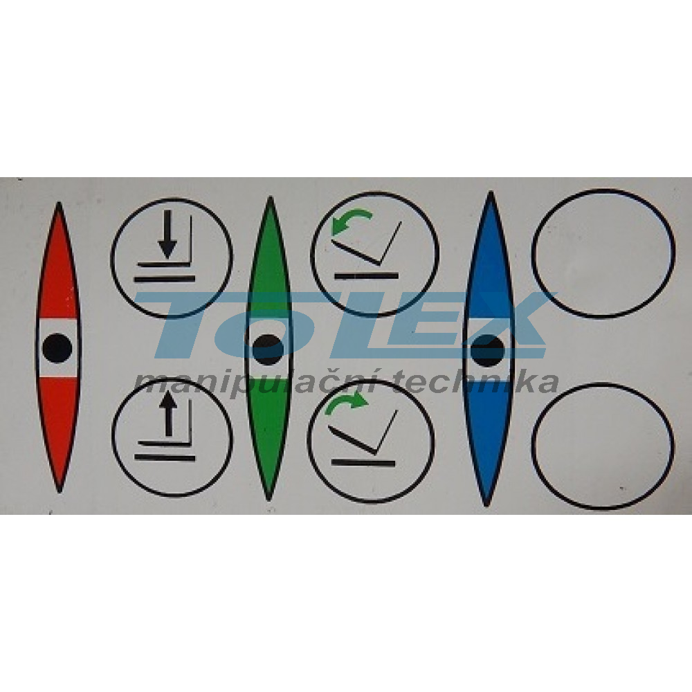 samolepící symbol "ovládání vidlic", rozměry: 145 x 75mm, materiál bílá lesklá samolepící folie s čtyřbarevným lesklým potiskem