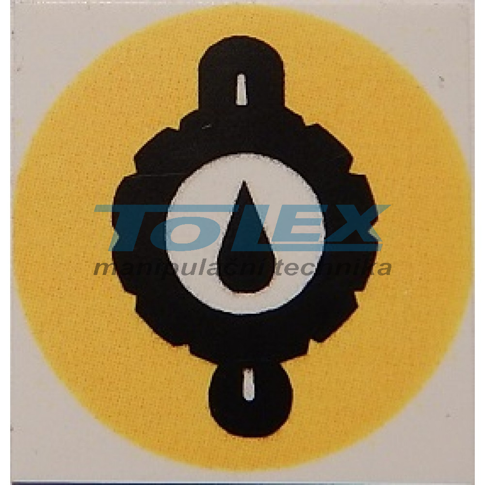 samolepící symbol teplota hydraulického oleje, rozměry: průměr žlutého kruhu symbolu 20mm