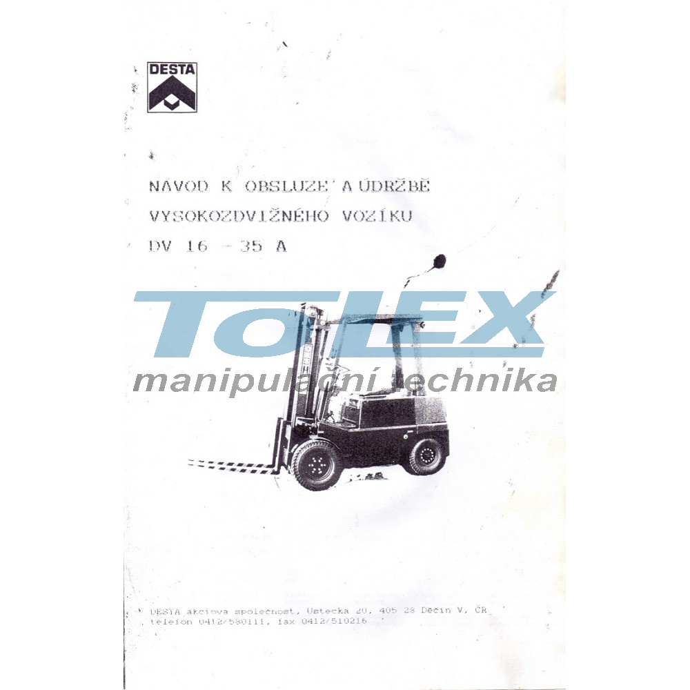 univerzální návod k obsluze a údržbě v českém jazyce pro čelní vysokozdvižný vozík Desta typ: DV16-35A, návod je v tištěné podobě