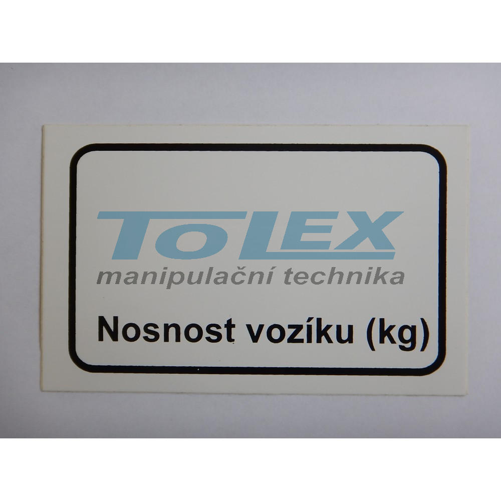 samolepící symbol "nosnost vozíku (doplňovací)", rozměry: 100 x 65mm, materiál bílá lesklá samolepící folie s jednobarevným lesklým potiskem
