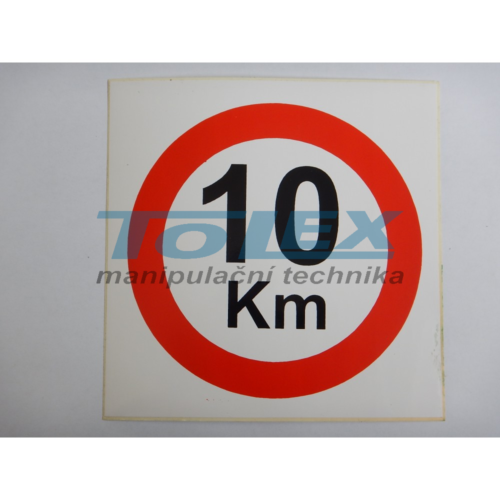 samolepící symbol "maximální rychlost 10km", rozměry: 130 x 130mm, průměr kruhu symbolu 110mm, materiál: bílá lesklá samolepící folie s dvoubarevným lesklým potiskem