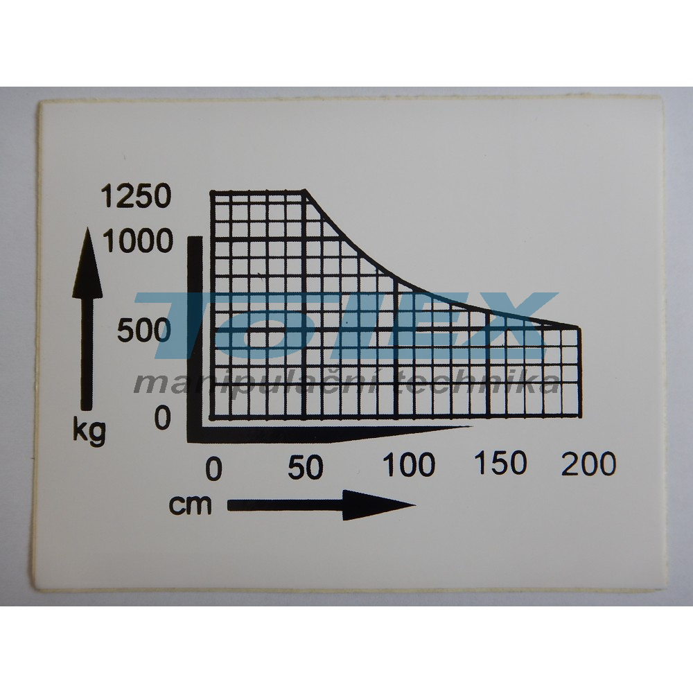 samolepící "zátěžový diagram 1250 Kg", rozměry: 100 x 80mm, materiál bílá lesklá samolepící folie s černým lesklým potiskem