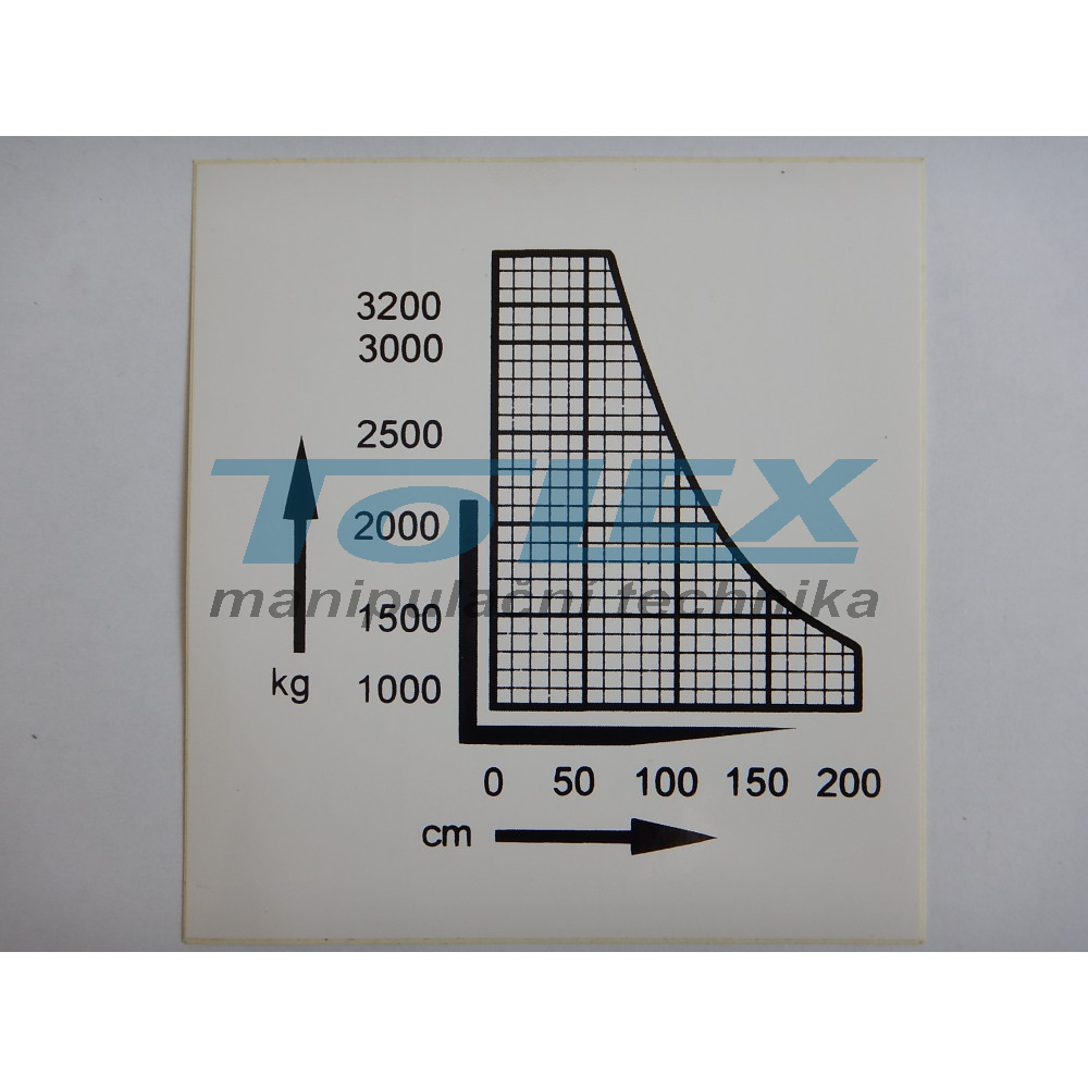 samolepící "zátěžový diagram 3200 Kg", rozměry: 110 x 100mm, materiál bílá lesklá samolepící folie s černým lesklým potiskem