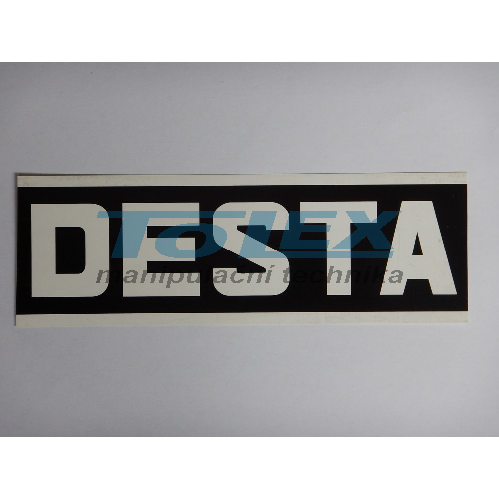 samolepka "DESTA" vodorovná, rozměry: 200x 70mm,  materiál: bílá lesklá samolepící folie s černým lesklým potiskem