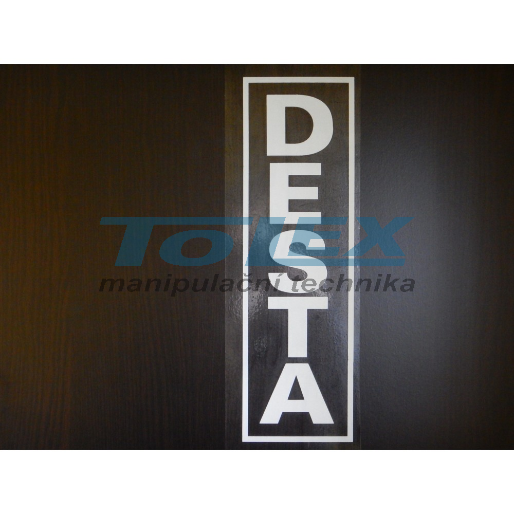 samolepka "DESTA" svislá (na zvedací zařízení), rozměry: 340x 100mm, materiál: průsvitná samolepící folie s bílým potiskem