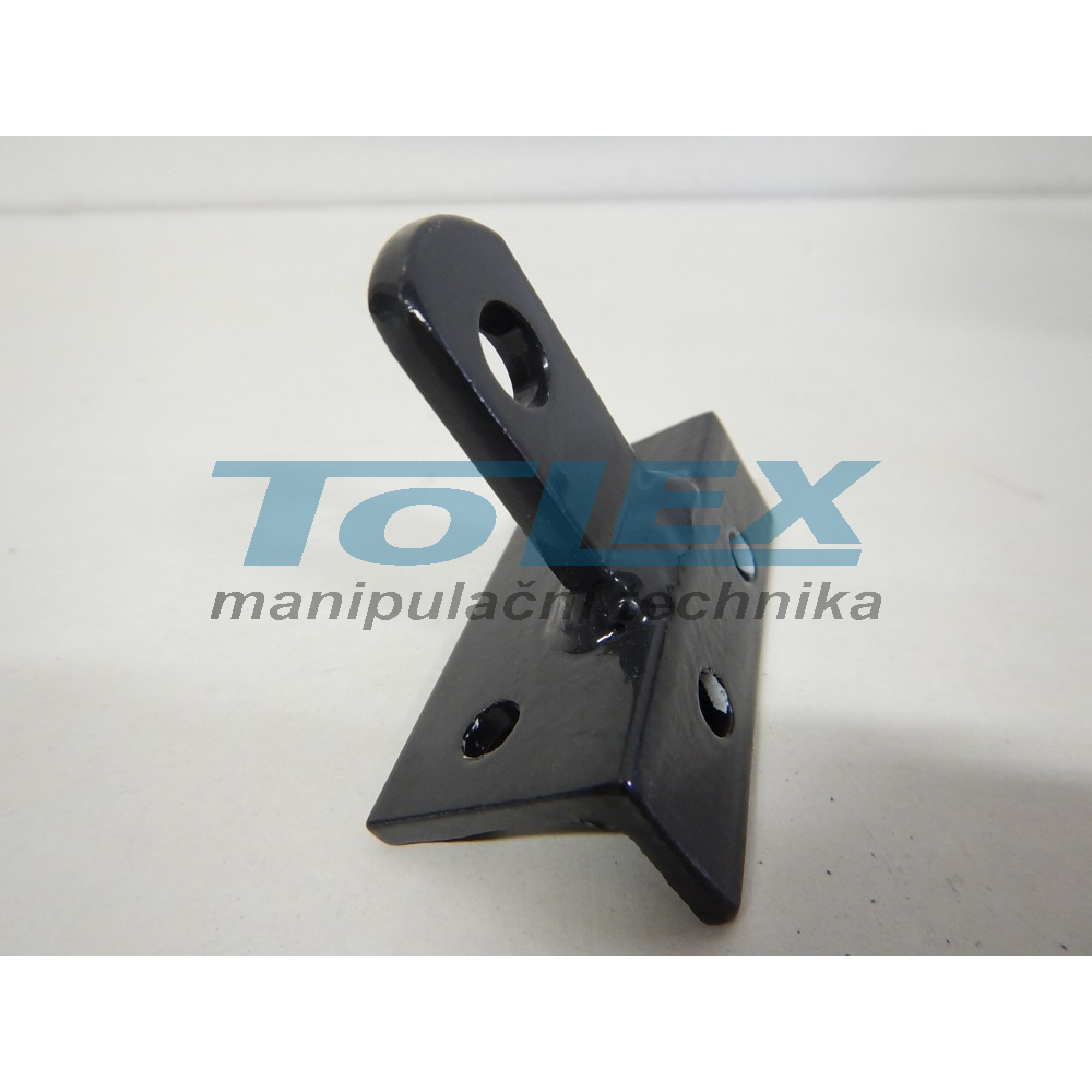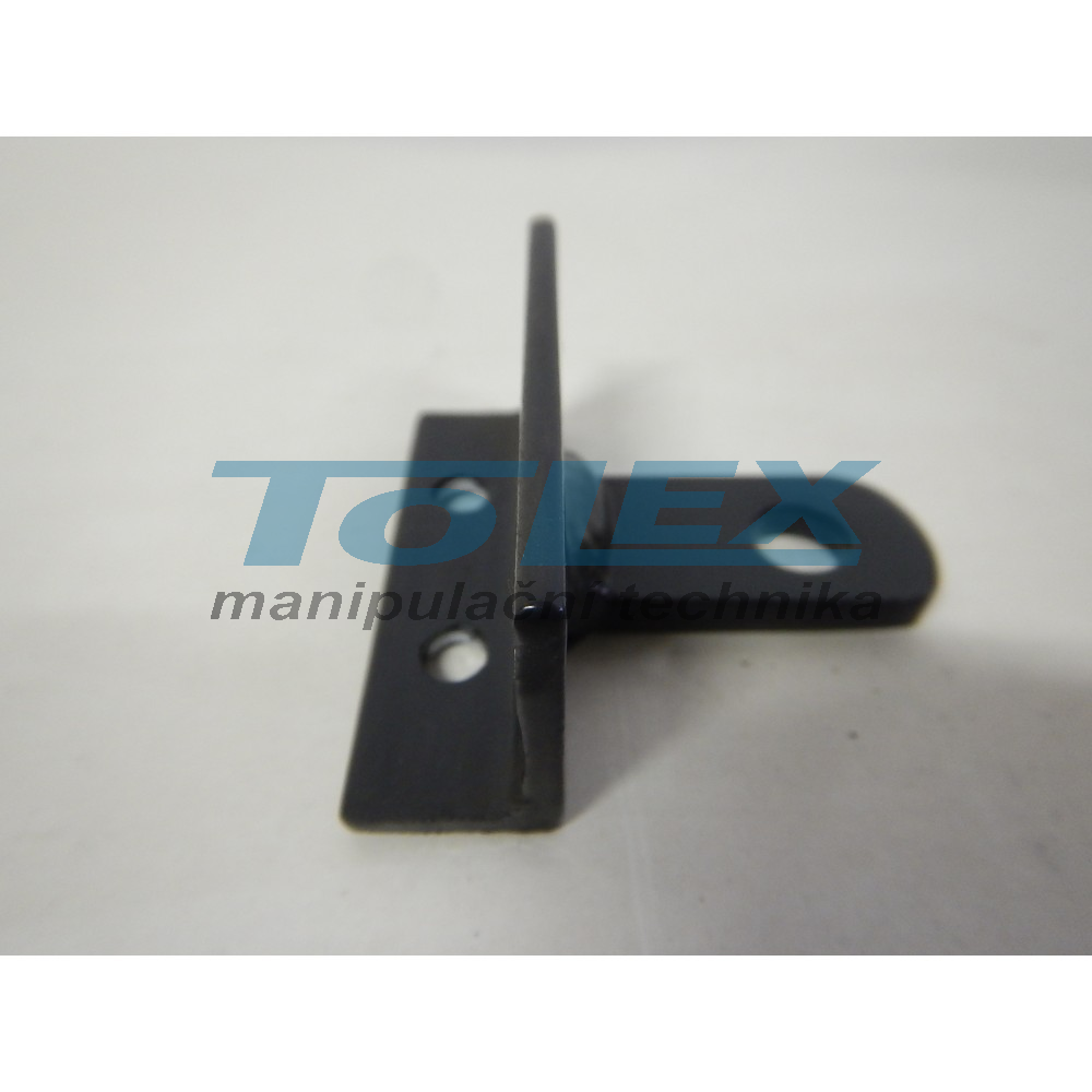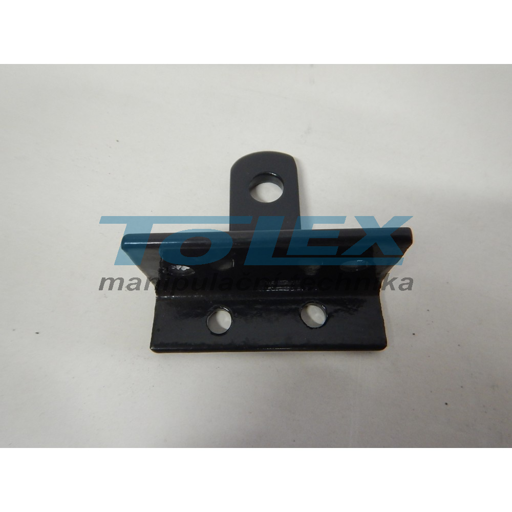 univerzální držák plynové vzpěry pro dveře kabiny vysokozdvižných vozíků a jiných strojů (rozměry: šířka 60mm, výška 30mm, otvory pro montáž 4x 6,5mm, výška patky pro vzpěru 40 mm, otvor pro vzpěru 10mm), povrchová úprava lesklý šedý komaxit