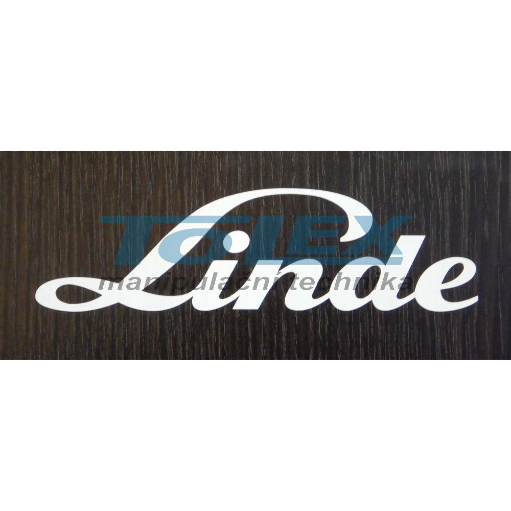 materiál bílá lesklá samolepící fólie (plotrový výsek nápisu Linde na přenosové fólii, nové provedení), rozměry: 90 x 320mm