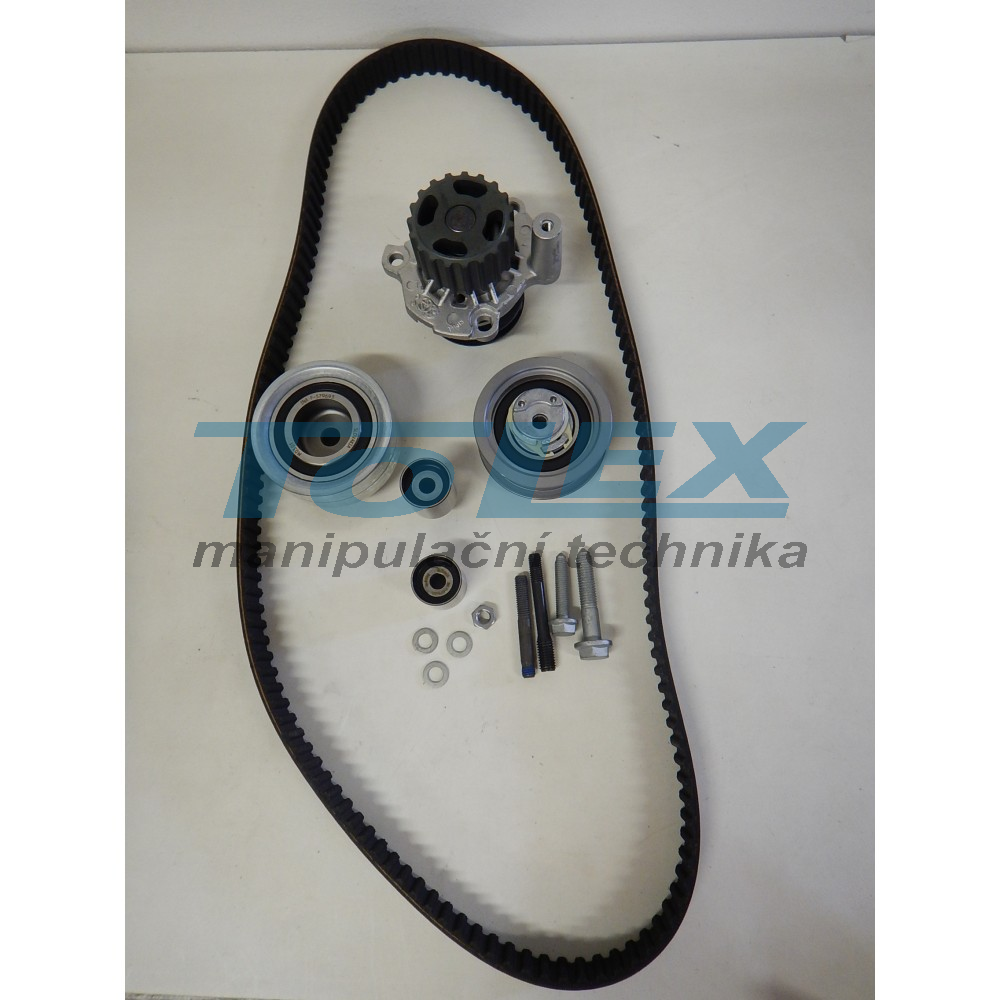 kompletní rozvodová sada včetně vodní pumpy a spojovacího materiálu pro motory Volkswagen typ: BXT, BEQ, BEU, BJC, použití pro vozíky typ: 391, 392, 393, 394, počet zubů řemenu 141, šířka řemenu 25mm