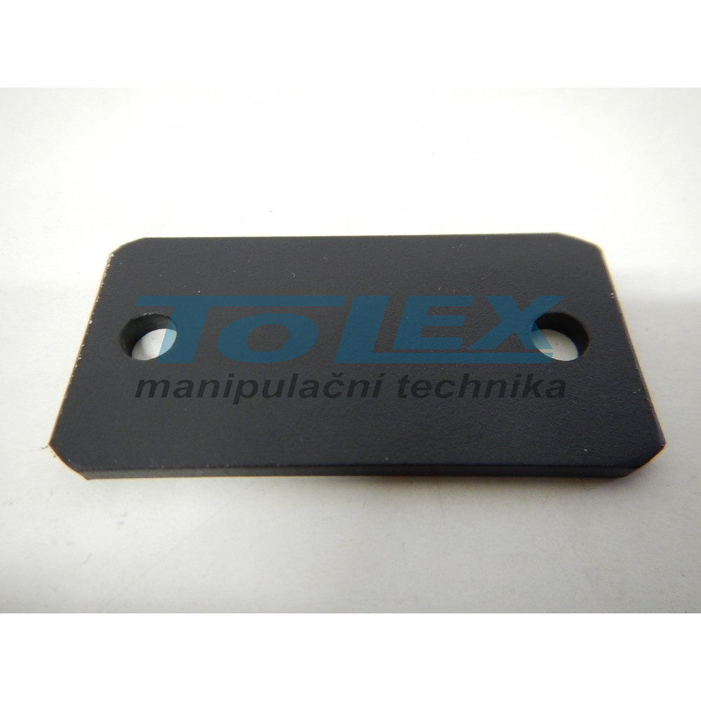 univerzální plechová příložka pro ukotvení hydraulických hadic zvedacího zařízení (rozměry 61,5x 30,5x 3,5mm, průměr otvoru 6mm, rozteč na střed kotvících otvorů 47mm)