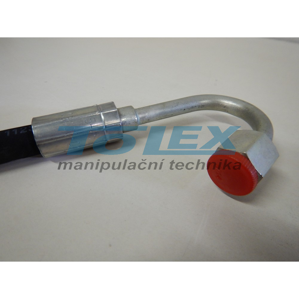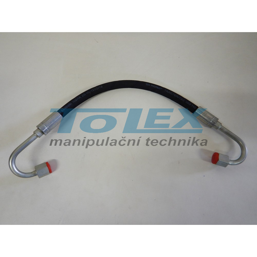 speciální přívodní hydraulická hadice k předklopovým válcům (od rozvaděče k zadnímu šroubení na válci- u pevného oka pláště) pro vozíky typ: H12/16/18/20 - 350 (2x M14 x 1,5 SLW 17mm)