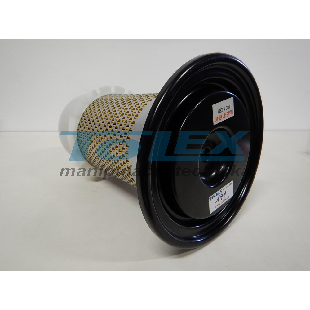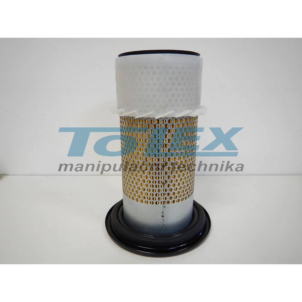 univerzální vzduchový filtr pro vozíky značky: Toyota, Mitsubishi, Caterpillar, Nissan, Komatsu, TCM, atd. (vnější průměr plechové příruby filtru 200mm, vnější průměr těla filtru 135mm, vnitřní průměr 65mm, celková délka 290mm)