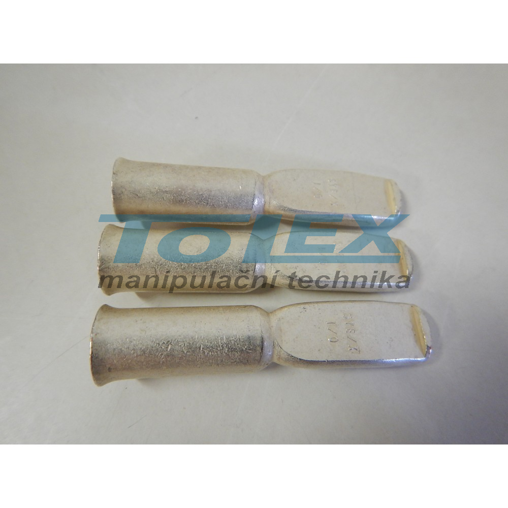 lisovací kontakty pro konektor SBE 3160, rozměry: celková délka 63,6mm, celková šířka 13mm, vnější průměr koncovky pro kabel 12,9mm
