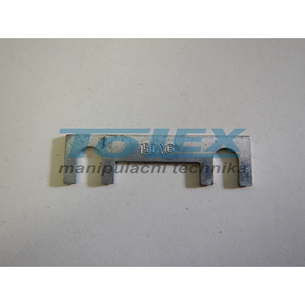 pojistka 150A, rozměry: celková délka 41mm, celková šířka 11mm, rozteče na středy šroubu 30mm, průřez otvoru 5mm (DIN72581/2)