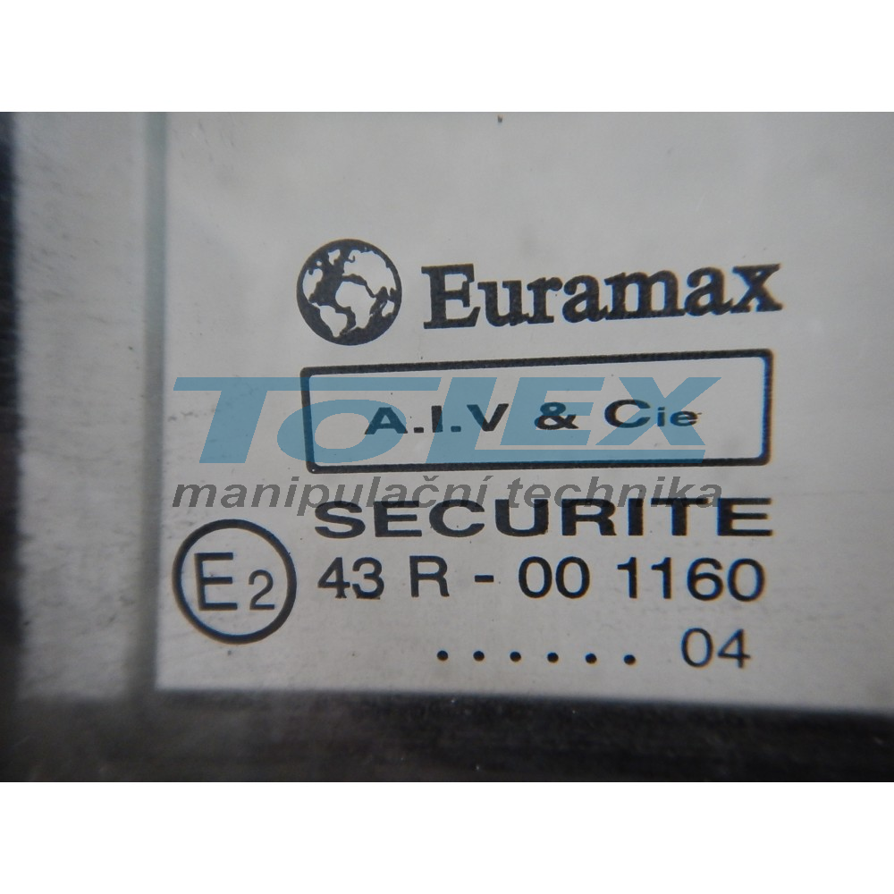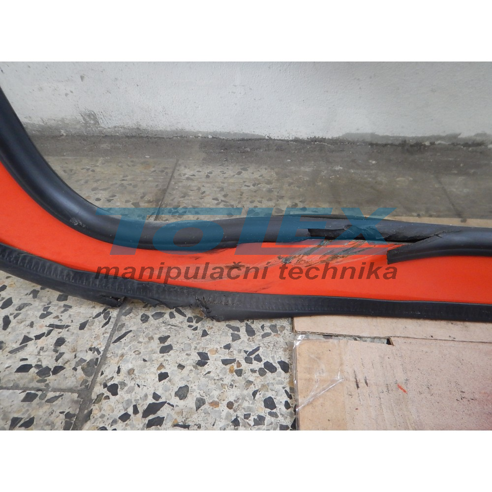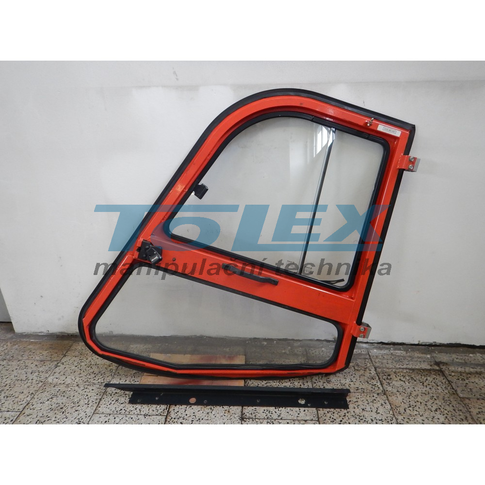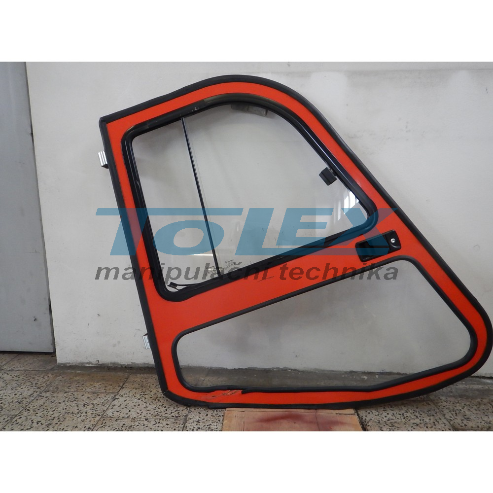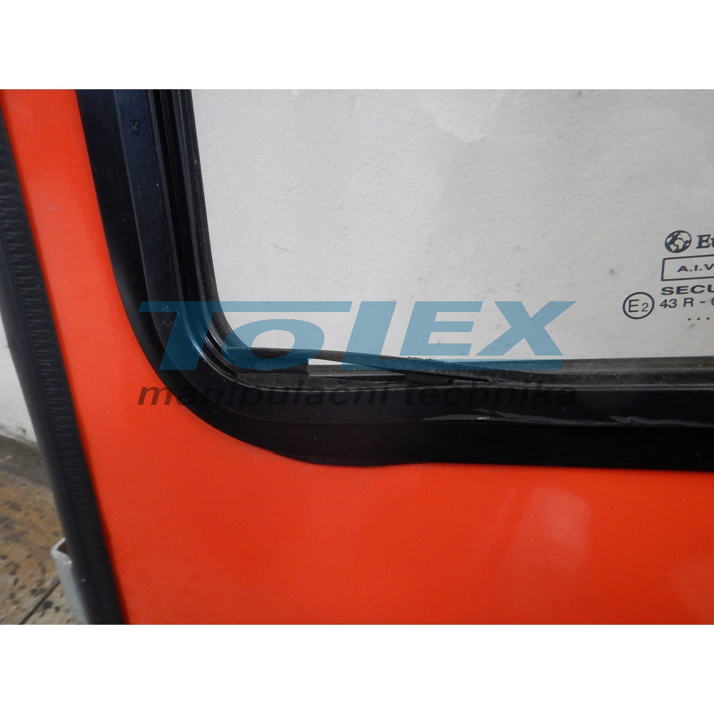 pravé dveře kabiny včetně příslušenství (lišta s panty, protikus zámku a plynové vzpěry, spodní roh) pro vysokozdvižný vozík Linde typ 350, H12/16/18/20. Dveře jsou kompletní, otevírací posuvné okénko, originální bezpečnostní skla s homologací, drobné oděrky viz foto